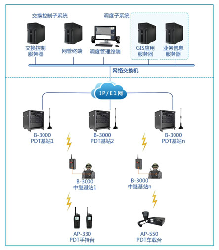 ADT-3000主要由S-3000交换控制子系统、B-3000基站子系统及D-3000调度子系统等3大子系统组成。
