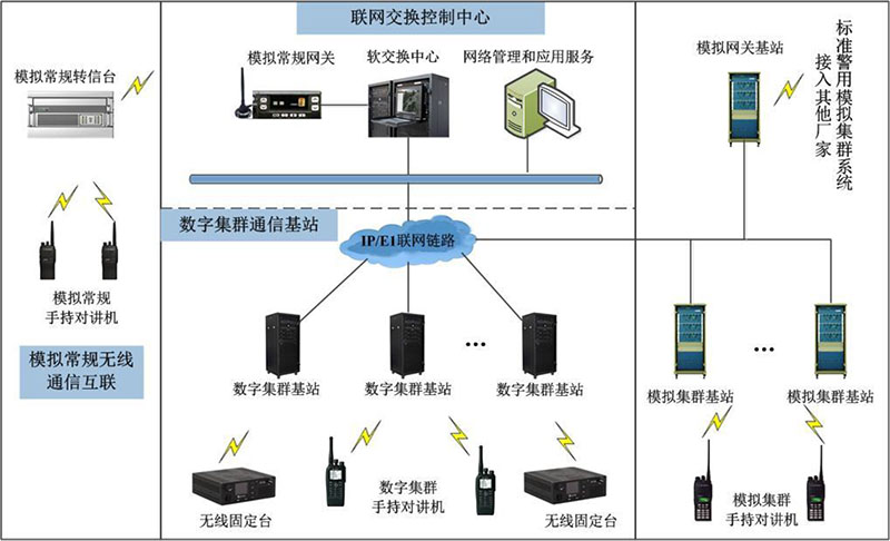 如何在数模过渡时期,遵循公安部的“因地制宜,统筹兼顾,平滑过渡,稳步推进”的原则,确保在不影响现有350兆模拟通信网的运行,不影响公安机关日常警务工作的开展的前提下,通过逐步改造、建设,平稳过渡到PDT数字集群通信网,是全国各级公安机关都将面临和关心的重大的问题。其中包括:已经大量投入的现有350兆模拟通信系统、移动台是否能继续使用?新的PDT数字集群系统、移动台是否能够兼容模拟?兼容的程度?和原有模拟系统是否能够互联互通等?